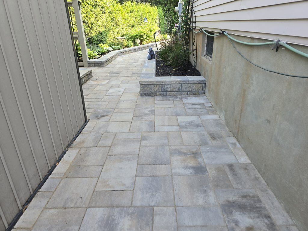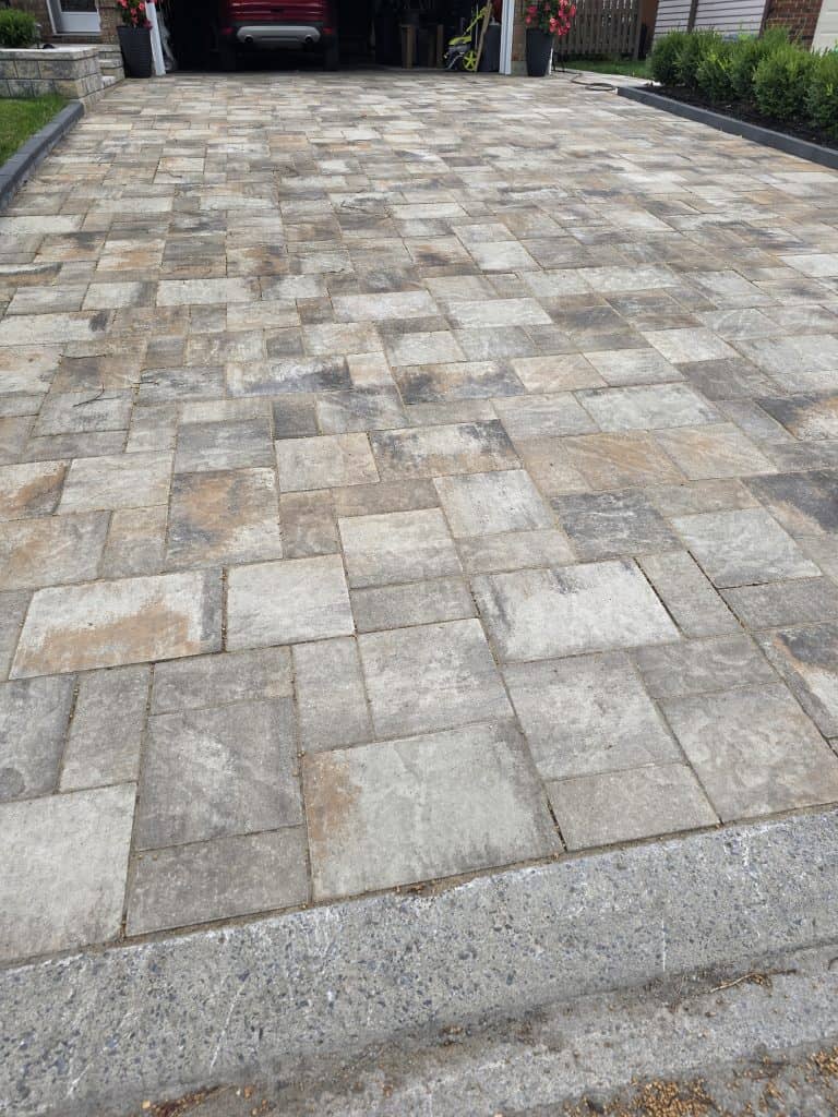 The interlock driveway, pathway, or patio will be sloped properly to drain water and it will look beautiful as well!